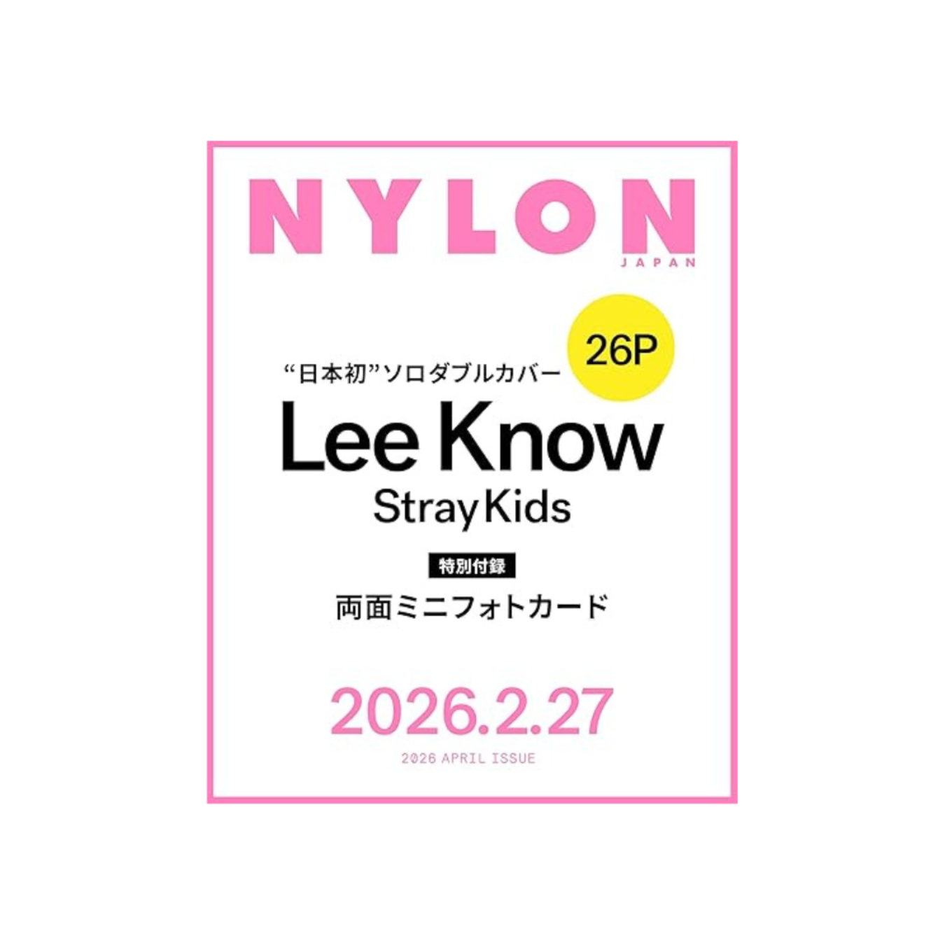 | LEE KNOW (Stray Kids) NYLON JAPAN 2026.04 | YES24 | Février 2026 | Participants | FRANCE |